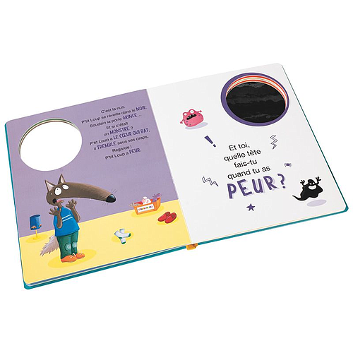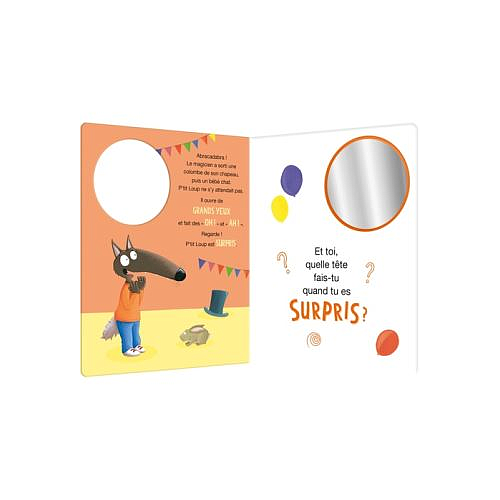 Aujourd'hui, P'tit Loup est de bonne humeur. Et toi, quelle tête fais-tu quand tu es heureux ? Découvre les 6 grandes émotions et amuse-toi à les imiter dans un joli miroir présent à chaque page !