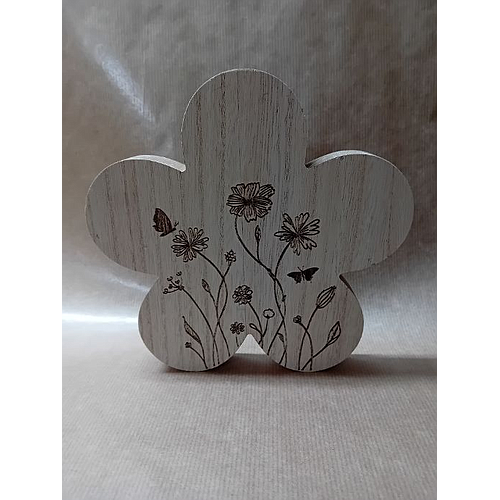 Fleur en bois avec pyrogravure dessus