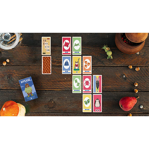 Dans Hygge, aidez les animaux de la forêt à trouver et ranger leurs objets préférés avant l'arrivée de l'hiver. Mais attention, vous ne savez pas exactement quand il arrivera. Récupérez le plus d'objets possibles mais aussi ceux de la plus grande valeur pour gagner la partie. Pensez à prendre les lignes ou colonnes de cartes qui vous intéressent et réfléchissez bien à ce que vous laissez aux autres joueurs.