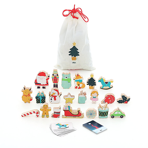 Jour après jour, collectionnez les figurines et cartes et reconstituez le jeu emblématique de reconnaissance tactile « Touche et trouve », aux couleurs de Noël. Les figurines en bois, adaptées aux petites mains à partir de 2 ans, pourront également être utilisées en jeu libre. Imagination, mémoire et sens du toucher seront stimulés. Vivement le 1er décembre !