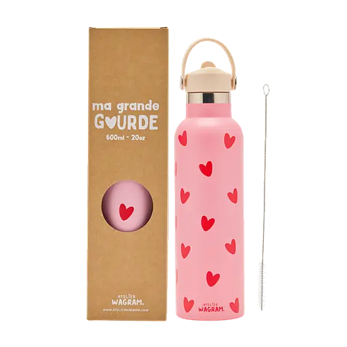 Gourde isotherme 600ml "Rose à cœurs rouges"